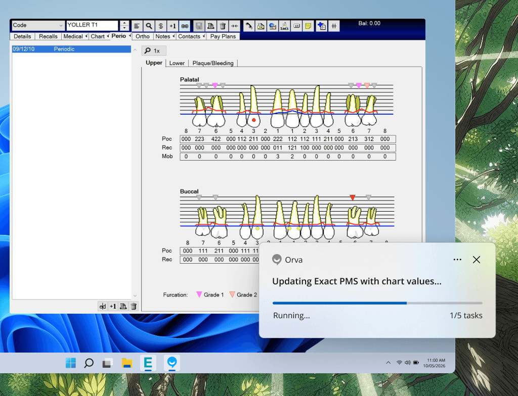 Orva completes the chart inside your PMS using keyboard and mouse actions automatically.